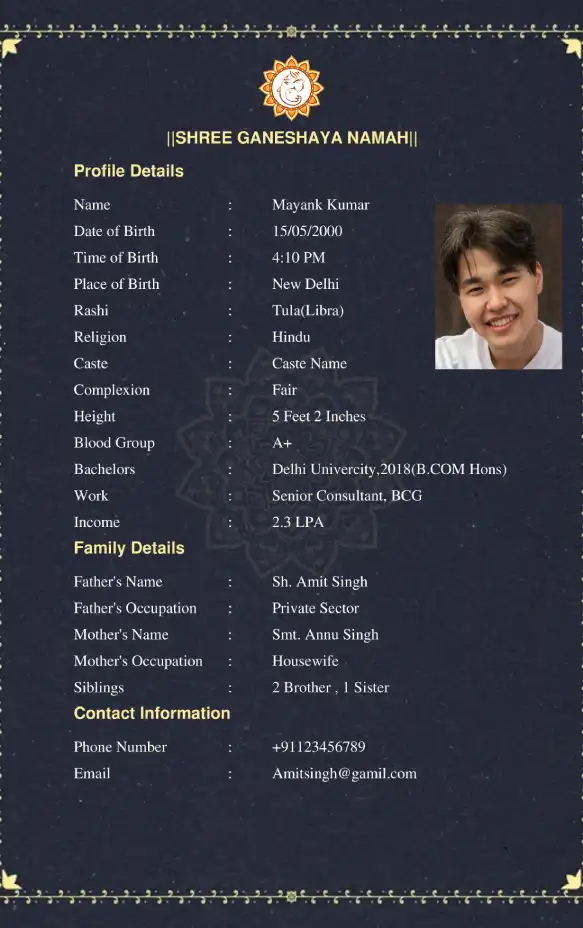 A Kayastha Marriage Biodata is a profile document designed specifically for marriage purposes within the Kayastha community.