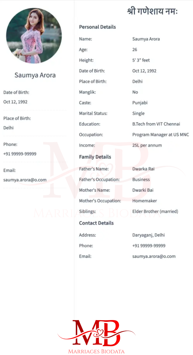 At MarriagesBiodata.com, we provide free, professional NRI marriage biodata formats (Word/PDF) for both brides and grooms.